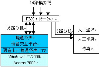 適用于中小型企事業(yè)單位的客戶服務(wù)系統(tǒng),或信息查詢系統(tǒng)。特點是線路資源主要用于交互系統(tǒng),可以最大限度的利用線路資源進行服務(wù)或查詢工作。同時充分利用交換機進行內(nèi)部線路交換,提高服務(wù)效率。