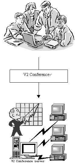 I P視頻會議,是一種利用普通的PC機加上簡單的視頻攝像頭和耳機麥克風,通過Internet或者是局域網(wǎng)進行傳輸,以低廉的成本傳送數(shù)據(jù)、視頻和音頻信號的新型會議方式。V2公司的視頻會議產品V2 Conference 就采用了這種技術先進而且經(jīng)濟合算的方式,與傳統(tǒng)的需要專用的服務器和硬件支持的視頻會議相比,該系統(tǒng)可以使您無需進行成本高昂的投入,就實現(xiàn)高質量、高可靠性的音視頻通訊。同時,為了方便您的管理,V2 Conference提供了會議管理的功能,使您足不出戶,就可以掌控全局。