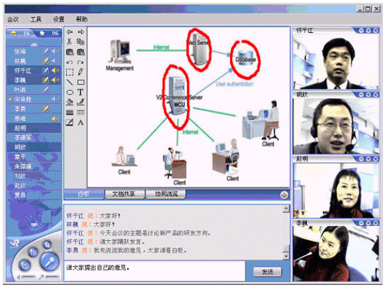 V2 Conference可以利用普通的PC機、標準的視頻攝像頭、耳機和麥克風,通過Internet或者是局域網(wǎng)進行會議。與傳統(tǒng)的需要專用的服務器和硬件支持的視頻會議相比,企業(yè)無需投入高昂的成本,就可以實現(xiàn)高質(zhì)量的遠程會議。同時,V2 Conference還提供了遠程會議管理的功能。