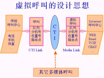 由于有了這種“虛擬呼叫”的技術,CTI平臺才能夠?qū)嶋H的電話呼叫和來自Internet的訪問進行統(tǒng)一的處理。這是一種完整意義上的將傳統(tǒng)呼叫與Internet訪問完美結(jié)合的設計思想。