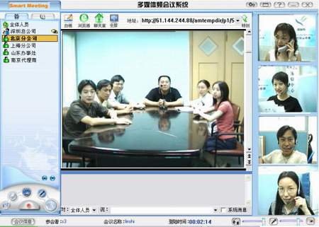 八路視頻隨意切換。SmartMeeting利用先進的音視頻壓縮技術,可以實現(xiàn)八人混音的音頻效果,使用戶在開會進行中,所有與會者可以同時聽到所有人的聲音,讓溝通更加流暢。另外,根據(jù)實際需求,SmartMeeting最多可以擴展到16路語音混合。為了保證更好的使用效果,在會議進行中,所有會議成員都會顯示在用戶列表中,用戶可以通過點擊列表來顯示該會員的視頻圖像。在整個過程中,用戶可以隨意切換當前畫面,讓使用更方便。