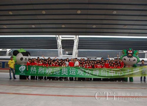 經(jīng)過23 個(gè)小時(shí)的車旅生活,我們來到了我們偉大的首都--北京.激動(dòng),意外,驚喜.我從來沒有想過會(huì)有福娃來接我們.當(dāng)我們所有人看到晶晶和貝貝時(shí)候.23 個(gè)小時(shí)的勞累一掃而空.在奧組委的工作人員的帶領(lǐng)下.我們?cè)谝惶?hào)站臺(tái)集合.終于可以滿足大家的心愿拉!!-和福娃合影咯!看看大家多有激情!那2個(gè)福娃是大家精神的強(qiáng)大的動(dòng)力.哈哈.和我們親愛的奧運(yùn)吉祥物合影留念后.大家坐上涼爽的冷巴.向我們的駐地開進(jìn)!