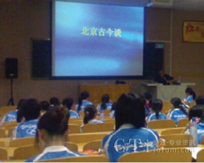 7月25日中央財經(jīng)大學(xué)的課堂里,近百位奧運(yùn)觀眾呼叫中心的志愿者聆聽了北京第二外國語大學(xué)西班牙語呂龍根教授的講座——“北京古今談”。呂教授幽默的語言、澎湃的激情,感染并征服了在座的每一位志愿者。教授從中國古代的六大古都(北京、西安、洛陽、開封、南京、杭州)談到古代北京的五朝建都(遼、金、元、明、清),從北京偉大的中軸線,談到北京建筑的風(fēng)水學(xué),從北京的胡同和四合院,談到北京的著名小吃,等等等等。可謂是古今暢想、無所不談,真正讓我們領(lǐng)略了何為學(xué)者風(fēng)范。