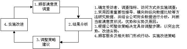 顧客滿意度調(diào)查和客戶投訴和建議處理系統(tǒng)、神秘顧客調(diào)查、流失客戶分析是當(dāng)前企業(yè)收集客戶意見的四種主要方法。其中,顧客滿意可以運(yùn)用幾種方法衡量。它可以通過詢問直接衡量:“請(qǐng)按下面的量度說出你對(duì)某服務(wù)的滿意程度:很不滿意、不太滿意、一般、比較滿意、很滿意”(直接報(bào)告滿意程度)。還可以要求受訪者評(píng)價(jià)他們期望一個(gè)什么樣的產(chǎn)品屬性,以及他們實(shí)際得到的是什么(引申出來的不滿意)。另外一種方法是要求受訪者列出他們?cè)诋a(chǎn)品上發(fā)現(xiàn)的任何問題和他們能建議的任何改進(jìn)措施(問題分析)。最后,公司可以要求受訪者按產(chǎn)品各要素的重要性不同進(jìn)行排列,并對(duì)組織在每個(gè)要素上的表現(xiàn)作出評(píng)價(jià)(重要性/績效等級(jí)排列)。最后一種方法可以幫助公司了解它是否在一些重要的要素方面表現(xiàn)不佳,或在一些相對(duì)不重要的要素方面過于投入。而且,研究顯示,在收集有關(guān)顧客滿意的信息時(shí),詢問顧客再次購買和再次推薦的問題,也是十分有價(jià)值的,它們共同構(gòu)成了顧客滿意度調(diào)查指標(biāo)。