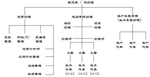 在呼叫中心的組織結(jié)構(gòu)及職能分工上,外包型呼叫中心與企業(yè)自建型呼叫中心有很多共同點(diǎn),它們間主要的區(qū)別在于外包型呼叫中心分工更細(xì),而且有很多專門人員,而企業(yè)自建型呼叫中主的很多職能是由一人兼任或借助其它部門的支持和服務(wù)。從一個典型的外包型呼叫中心的組織結(jié)構(gòu)來看,通常會設(shè)置如下一些組織單位: