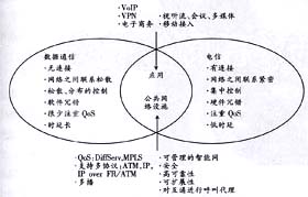 NGN是融合網(wǎng)絡(luò)。數(shù)據(jù)網(wǎng)與電信網(wǎng)曾是兩個(gè)有著不同特性的網(wǎng)絡(luò),它們的融合將帶來(lái)一系列新的業(yè)務(wù),并對(duì)網(wǎng)絡(luò)平臺(tái)提出新的要求(見(jiàn)圖1)。因此,NGN的網(wǎng)絡(luò)功能結(jié)構(gòu)如何設(shè)定是我們要關(guān)注的重點(diǎn)。