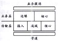 業(yè)務(wù)層的基本功能是在由傳送層提供的“電路”中把負(fù)荷進(jìn)行“整形”并進(jìn)行信息的交換,其目標(biāo)是提升每一個(gè)比特的價(jià)值。業(yè)務(wù)層被橫切為邊緣和核心兩大部分,界線是10萬(wàn)分組/s。在業(yè)務(wù)層,數(shù)據(jù)分組被單獨(dú)處理或者作為“流”(與特定用戶或應(yīng)用相關(guān)的分組串)來(lái)處理,老的技術(shù)包括幀中繼和ATM,新的技術(shù)MPLS有可能成為ATM的替代技術(shù)。