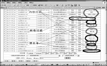 通過統(tǒng)計功能,管理員可以針對日期、過濾對象、發(fā)件人、病毒等條件進行郵件的統(tǒng)計,通過統(tǒng)計可以了解郵件系統(tǒng)的信件流量、個別用戶的信件流量、垃圾郵件的過濾率、病毒郵件的數(shù)目以及各種郵件的收/發(fā)件人信息,便于了解整個郵件系統(tǒng)的工作情況。