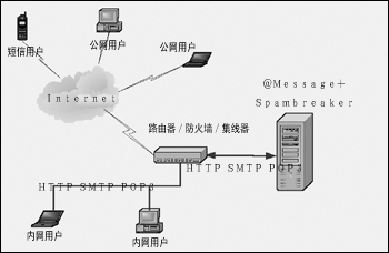 圖3 Spambreaker+3Rsoft公司Web郵件系統(tǒng)解決方案示意圖