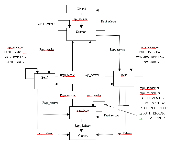 首先通過rapi_session()打開一個(gè)Unix域的RAPI Socket,并創(chuàng)建一個(gè)RSVP的會(huì)話實(shí)例,如果成功則返回一個(gè)非零的數(shù)值用于表示建立的會(huì)話ID號(hào)。