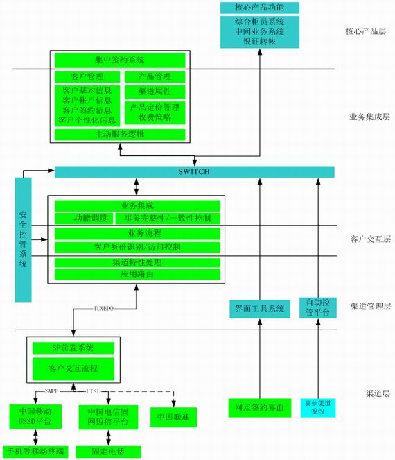 手機(jī)銀行作為一個(gè)實(shí)時(shí)在線、交互性強(qiáng)的交易渠道,首先它是基于銀行帳戶的交易,而不是基于手機(jī)話費(fèi)的交易,因此需要客戶將手機(jī)和其銀行帳戶對(duì)應(yīng)綁定;其次,一方面銀行將有大量金融產(chǎn)品通過該渠道發(fā)布,需要將銀行的金融產(chǎn)品解釋成手機(jī)銀行渠道的業(yè)務(wù)流程;另一方面,由于其貼近客戶的特定,而且由于手機(jī)這種移動(dòng)終端的界面表達(dá)能力的限制,不可能把所有的功能一次性全部展示在客戶面前,需要為不同客戶提供不同的定制服務(wù)。 最后,手機(jī)銀行系統(tǒng)需要支持多通信服務(wù)提供商和多接入技術(shù)。