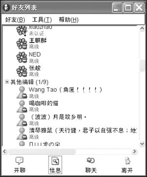 注意:在默認設置下Gaim是不顯示離線好友的,當然,你也可以在“好友”菜單中選中“顯示離線好友”項。