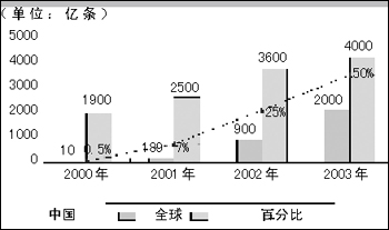 中國短信發(fā)送量對(duì)比全球發(fā)送量