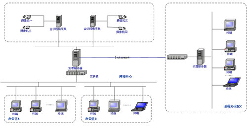下屬各單位辦公區(qū)的工作終端或遠(yuǎn)程(Internet)終端,可以連接到中心機(jī)房的轉(zhuǎn)播服務(wù)器上進(jìn)行接收數(shù)據(jù)。用戶只需直接打開IE瀏覽器然后輸入轉(zhuǎn)播服務(wù)器的IP地址或者相關(guān)鏈接,進(jìn)入到正在直播的會議現(xiàn)場,實(shí)現(xiàn)遠(yuǎn)程實(shí)時參與會議的目的。