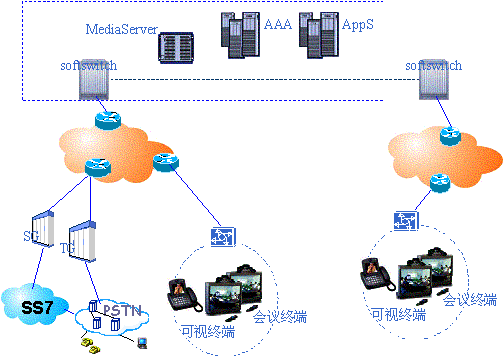 (1)軟交換設(shè)備:是整個(gè)網(wǎng)絡(luò)的核心,提供集中的呼叫控制、路由、資源管理及增值業(yè)務(wù)接口。