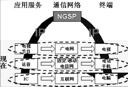 完全融合方式 完全融合的典型技術(shù)解決方案是目前業(yè)界普遍關(guān)注的焦點(diǎn)—NGN(下一代網(wǎng)絡(luò))。NGN的核心思路是重新生產(chǎn)和建立符合標(biāo)準(zhǔn)的服務(wù)、網(wǎng)絡(luò)和終端,徹底取代原有相對(duì)獨(dú)立的應(yīng)用服務(wù)、通信網(wǎng)絡(luò)和終端。由于技術(shù)標(biāo)準(zhǔn)制定復(fù)雜,網(wǎng)絡(luò)設(shè)備投資巨大,實(shí)施周期過長(zhǎng)等因素,實(shí)現(xiàn)起來困難較大。