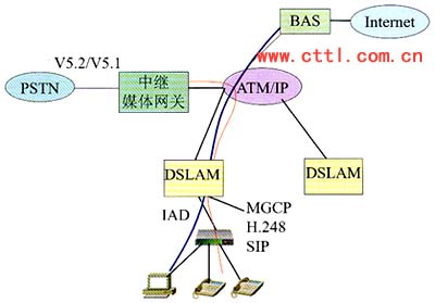 基于Ethernet接入提供分組話音歸根到底仍然是VoIP的解決方案,利用IAD支持H.248或SIP協(xié)議,可以順利地實現(xiàn)網(wǎng)絡(luò)的演進(jìn)。VoIP