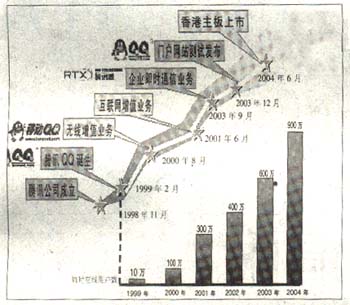 正是憑借著這些優(yōu)勢,即時(shí)通信吸引聚集著一些忠誠用戶,并開始搭建網(wǎng)絡(luò)廣告、無線增值等一系列各種潛在的交易平臺(tái)。可以想象,一個(gè)絕佳的聊天窗口同時(shí)也是一個(gè)方便的交易窗口和暢通的付費(fèi)入口,即時(shí)通信正在摸索一條前所未有的盈利模式。有專家指出,經(jīng)過近5年的曲折前行,即時(shí)通信的盈利模式將在2005年逐步明確。以騰訊QQ為例,我們來剖析一下即時(shí)通信的盈利模式是如何由模糊走向清晰的。從1999年2月QQ發(fā)布到2000年5月,QQ迅速聚攏了10萬用戶。2000年8月,騰訊公司同廣東移動(dòng)合作,僅僅用了一年就扭虧為盈,實(shí)現(xiàn)了1000萬人民幣的純利潤。