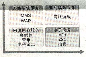 其中,互聯(lián)網(wǎng)及增值業(yè)務(wù)包括兩部分,核心業(yè)務(wù)主要是即時(shí)通信服務(wù),包括傳輸文本信息、圖像、視頻、音頻以及會(huì)員服務(wù)、號碼服務(wù)、電子郵件等;另外還有娛樂資訊門戶的建設(shè),包括向用戶提供新聞、體育、娛樂等多類資訊,還包括游戲中心、交友中心、校友錄、電子賀卡等多種娛樂服務(wù)。