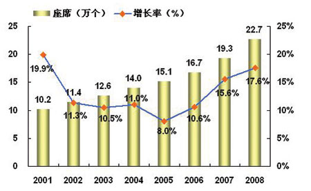 隨著中國(guó)呼叫中心市場(chǎng)規(guī)模的逐步擴(kuò)大,中國(guó)呼叫中心的發(fā)展速度逐漸放緩,中國(guó)呼叫中心產(chǎn)業(yè)已經(jīng)進(jìn)入成熟期,呼叫中心坐席的增長(zhǎng)速度從2001年的20%逐漸下降到2005年的8%左右。主要原因是大型行業(yè)用戶(hù)市場(chǎng)的飽和以及中小型企業(yè)市場(chǎng)的緩慢發(fā)展。