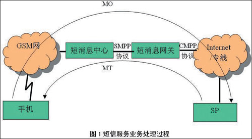 用戶收短信業(yè)務(wù)(即MT業(yè)務(wù),如短信群發(fā)等):提供此項業(yè)務(wù)的SP將短信內(nèi)容以CMPP協(xié)議發(fā)給連接的短信網(wǎng)關(guān),由短信網(wǎng)關(guān)根據(jù)用戶手機(jī)號段以SMPP協(xié)議發(fā)給用戶所屬的短信中心;