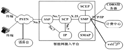 Management Point)的接入管理。SCP通過(guò)七號(hào)信令網(wǎng)與SSP和IP相連,通過(guò)數(shù)據(jù)鏈路(X.25)與SMP相連。SCP與SSP和IP之間的通信規(guī)程采用智能網(wǎng)應(yīng)用規(guī)程(INAP).IP(Intelligent