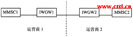 圖2 點(diǎn)對(duì)點(diǎn)多媒體消息業(yè)務(wù)網(wǎng)間互聯(lián)網(wǎng)絡(luò)結(jié)構(gòu)示意圖