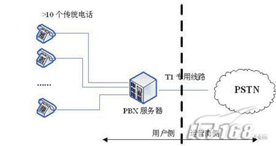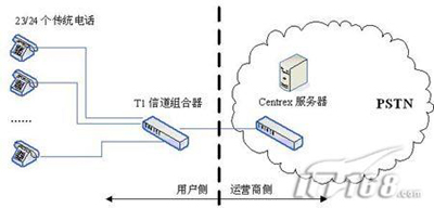相反,在傳統(tǒng)的PBX或新興的IP-PBX中,這些功能模塊通常配置在用戶側(cè)的網(wǎng)絡(luò)元素上,而且通過一條或多條專用線路T1(傳統(tǒng)PBX)或DSL(新興PBX)連接到中心辦公室,用PSTN的連接。圖1說明了PBX和Centrex服務(wù)的區(qū)別。而且,DSL還能在相同的鏈路支持語音和數(shù)據(jù)的傳輸,而且維護(hù)鏈路的成本也遠(yuǎn)遠(yuǎn)小于維護(hù)T1所需的代價(jià)。另外,由于呼叫控制能夠在本地裝載,而IP-PBX能夠支持Internet連接,因此每23(T1-PRI)或24(T1-CAS)個電話終端就不再需要一條專用線路T1的支持了。(后續(xù)將進(jìn)一步說明)
