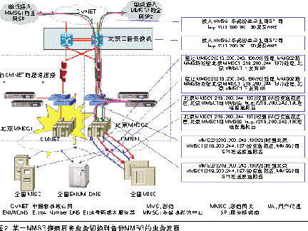 為驗(yàn)證基于IP尋址的彩信網(wǎng)關(guān)備份方案的現(xiàn)網(wǎng)可行性,2006年12月6日在北京MMSG進(jìn)行了容災(zāi)備份的測(cè)試。當(dāng)時(shí),北京MMSG1已經(jīng)割接入網(wǎng),承載空中網(wǎng)公司、Sina公司的業(yè)務(wù),北京MMSG2正在進(jìn)行測(cè)試,TOM公司進(jìn)行配合。