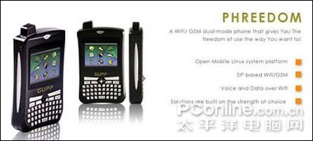 很多技術分析人士都認為,VoWiFi的下一波功能將主要集中在雙模手機上,即手機擁有Wi-Fi IP電話功能和普通蜂窩電話功能。當用戶位于家中、辦公室或公共Wi-Fi熱點區(qū)域,可以使用Wi-Fi IP電話功能進行通話,而在沒有Wi-Fi網(wǎng)絡的地區(qū),則可以使用傳統(tǒng)的蜂窩網(wǎng)絡進行通話。不論采用哪種網(wǎng)絡,用戶的手機號碼是唯一的。由于通過Wi-Fi網(wǎng)絡撥打IP電話的費用要低于現(xiàn)有的固定電話,因此未來這種電話很可能會取代大部分用戶目前使用的固定電話。下圖為GUPP公司最新推出的VoWiFi/GSM雙模Linux智能手機PHREEDOM