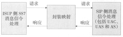 由于ISUP同SIP采用不同的消息封裝機制,ISUP采用的是二進制編碼,而SIP采用文本編碼方式。因此,MGC收到ISUP消息后通過ISUP-MIME方式把ISUP消息內(nèi)容封裝在SIP消息體中,傳送到SIP接收端MGC再把所需內(nèi)容提取出來,從而完成對ISUP消息的透明傳送,實現(xiàn)IP網(wǎng)同PSTN網(wǎng)絡(luò)的無縫連接。具體過程見圖。