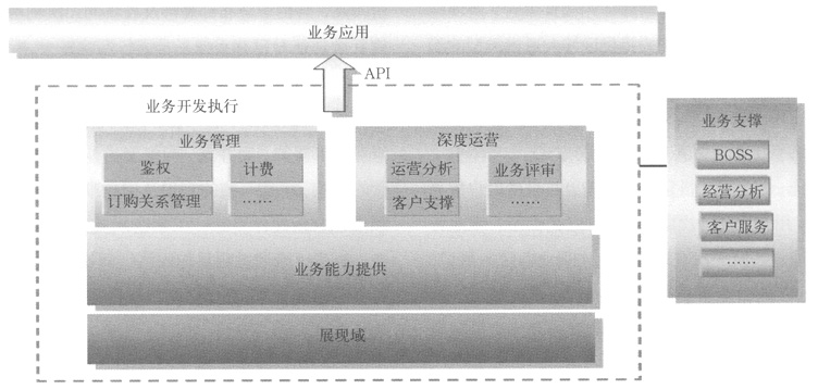 根據移動增值業(yè)務特征及業(yè)務部署、管理需求,目標網絡架構中將實現(xiàn)業(yè)務與控制的分離,劃分業(yè)務控制域和業(yè)務開發(fā)執(zhí)行域,并可開放公共接口實現(xiàn)各增值業(yè)務應用無差別的接入、管理及功能調用,以方便的實現(xiàn)業(yè)務的融合、業(yè)務功能的靈活組合,更利于高效、簡便的實現(xiàn)業(yè)務部署、開發(fā)及運營。