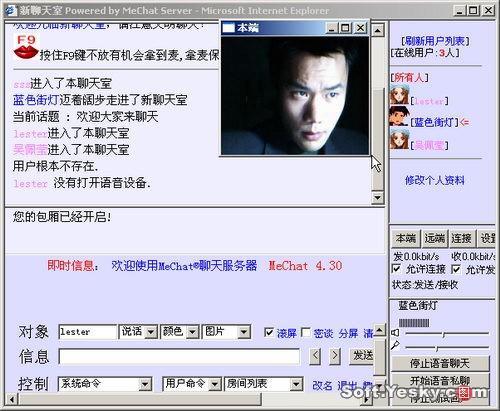 MeChat是由廣州和韻計算機(jī)有限公司開發(fā)的視頻聊天服務(wù)器。(點(diǎn)這里下載)與一般的采用ASP或CGI的語音聊天室不同,Mechat內(nèi)核由C