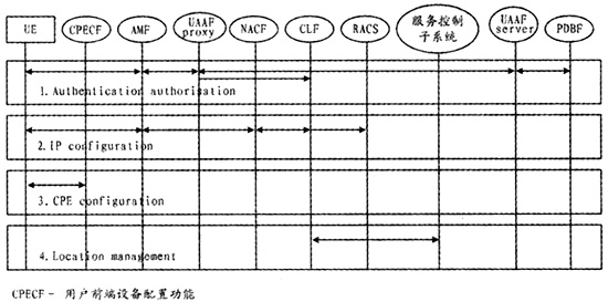NACF負(fù)責(zé)為UE分配IP地址,并提供UE所需要的其他網(wǎng)絡(luò)配置參數(shù),如域名服務(wù)器(DNS)地址,上層業(yè)務(wù)接入點地址等。