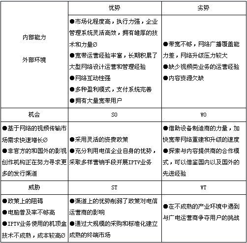 綜上所述,在我國IPTV市場上,電信運(yùn)營商、廣電運(yùn)營商、設(shè)備商、內(nèi)容提供商等均面臨著激烈競爭,各企業(yè)必須培育起自己的核心競爭力,才能在該市場中占有一席之地。