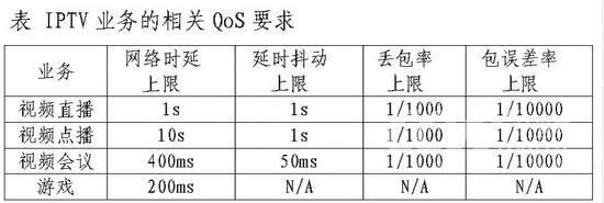 IPTV業(yè)務(wù)對(duì)時(shí)延也有一定的要求(參見附表):