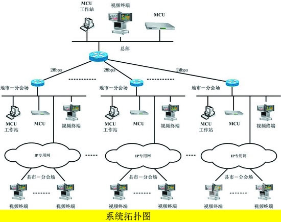 在視頻會議中,要考慮到,當(dāng)集團召開全體會議時,可以通過MCU級聯(lián)的方式,方便地與總部實現(xiàn)交互式會議。同時,應(yīng)與VoIP語音、前方工作隊監(jiān)控系統(tǒng)融合在一起,達(dá)到整體協(xié)調(diào)高效的工作。