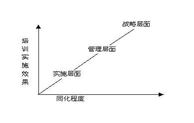 為了確保培訓(xùn)實施效果能達到預(yù)期的效果及水平即達到預(yù)期的認(rèn)識水平,來自于管理層的執(zhí)行力必不可少,任何一項培訓(xùn)工作如果不能自下而下的進行“洗腦”即同化過程,很難保證培訓(xùn)效果。簡言之,我們需要從戰(zhàn)略角度到管理層面直到實施層面的同化過程。