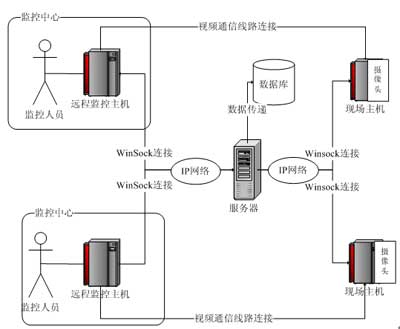 本系統(tǒng)基于瘦客戶端的C/S模式,在體系結構上采用以服務器為中心的星型結構,創(chuàng)新性地把監(jiān)控現(xiàn)場端和監(jiān)控中心端C角色化。即在本系統(tǒng)中所有的監(jiān)控現(xiàn)場端和監(jiān)控中心端相對整個系統(tǒng)的架構而言都是客戶端,它們的通信都需要經過服務器的驗證中轉。同時,監(jiān)控中心使用者的登錄由于這種架構模式,也必須要經過服務器的驗證才能成功登錄,進而獲得監(jiān)控的權利。