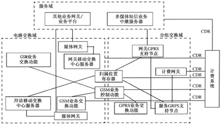 主要實現各類數據增值業(yè)務,例如WAP業(yè)務、互聯網短信業(yè)務、位置應用業(yè)務等。業(yè)務域由各業(yè)務網關/業(yè)務平臺產生CDR后,發(fā)送給計費系統(tǒng)作后續(xù)處理。例如,多媒體信息服務(MMS)的CDR由MMS