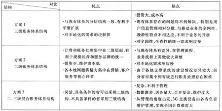 3G計費賬務體系結構主要分為三級賬務體系結構、二級賬務體系結構和二、三級混合賬務體系結構等幾種方式。各種賬務體系結構對比見表1。