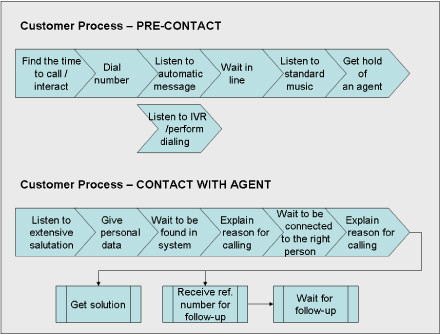 那么,從企業(yè)內(nèi)部的觀點(diǎn)出發(fā)看我圍繞這次簡(jiǎn)單的預(yù)定流程所產(chǎn)生的總體客戶(hù)體驗(yàn)如何呢?這需要好好評(píng)估,我一共只打了兩次電話(huà)并在24小時(shí)內(nèi)得到解決,而且我們之間的互動(dòng)——很有可能——已經(jīng)被記錄在航空公司的CRM系統(tǒng)中。但是如果你問(wèn)問(wèn)作為客戶(hù)的我,我會(huì)給出一個(gè)完全不同的場(chǎng)景描述:首先,提供給我的可聯(lián)絡(luò)電話(huà)號(hào)碼實(shí)在太多了,其次,沒(méi)有說(shuō)明這些電話(huà)號(hào)碼處理的“范圍”各是什么,再次代理質(zhì)量不合格,她完全不知道自己該干什么,還得求助于另外一個(gè)同事,最后,也是很重要的一點(diǎn),最終提交的解決方法并不能讓人接受。這些信息——或者說(shuō)的更準(zhǔn)確些,客戶(hù)的評(píng)價(jià)——出現(xiàn)在呼叫中心的報(bào)告里了嗎?出現(xiàn)在哪兒?沒(méi)有,這一方面是因?yàn)榱鞒滩⒉皇且钥蛻?hù)為中心的觀點(diǎn)來(lái)定義的,另一方面因?yàn)槲覀兪侨,我們努力的在工作,不希望自己變成透明人?