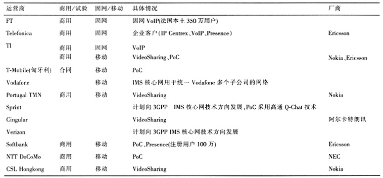 2、國內(nèi)外運(yùn)營商IMS發(fā)展