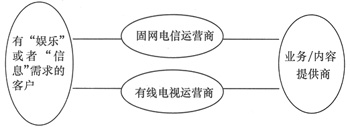 如圖1所示,雖然兩者使用的技術(shù)不同,但它們有一個(gè)相同的運(yùn)營組織結(jié)構(gòu),也就是說,客戶、運(yùn)營系統(tǒng)和業(yè)務(wù)/內(nèi)容提供商是它們競(jìng)爭的3要素,下面將從這幾個(gè)方面對(duì)IPTV與“數(shù)字電視”的競(jìng)爭做簡要的分析。