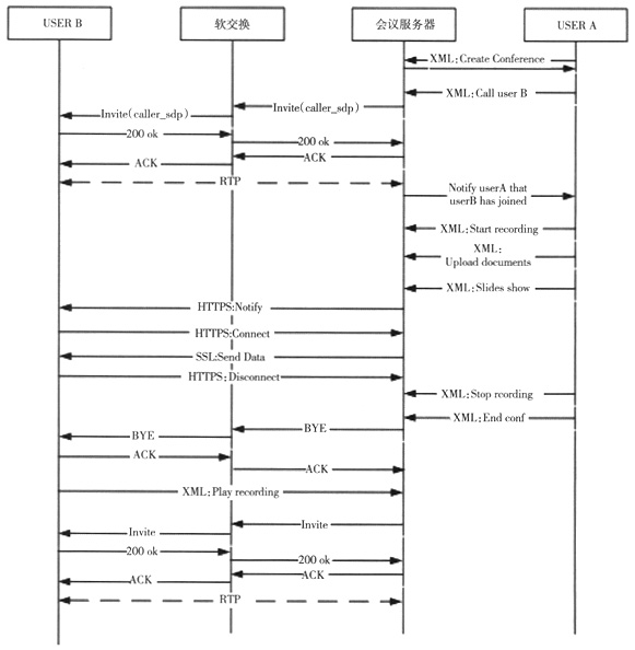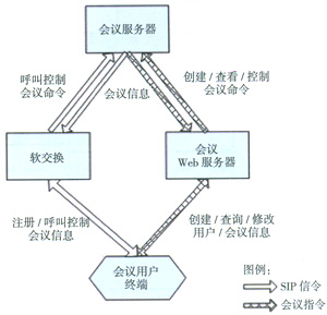 基于上述的分層開放系統(tǒng)架構(gòu),通過各層設(shè)備之間的相互配合實(shí)現(xiàn)了多媒體會(huì)議業(yè)務(wù)的應(yīng)用。