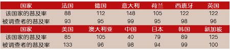 由于所調(diào)查的大多數(shù)是成熟市場,因此大多數(shù)國家的移動電話普及率超過75%。其中,普及率超過90%意味著有的用戶可能有幾張SIM卡。