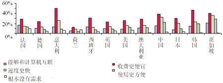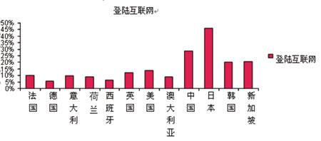 手機(jī)上網(wǎng)也受到一些用戶的歡迎,這得益于一些運(yùn)營商為促進(jìn)移動互聯(lián)網(wǎng)的推廣而越來越多地采取了手機(jī)上網(wǎng)打包套餐。此外,不同地區(qū)的用戶對使用手機(jī)上網(wǎng)的偏好不同,調(diào)查顯示,亞洲國家用戶使用手機(jī)上網(wǎng)的比例高于歐洲國家用戶。其中,日本的被調(diào)查者通過手機(jī)上網(wǎng)的比例明顯超過平均水平,這離不開NTTDoCoMo公司i-Mode的成功。有意思的是,中國緊隨日本排名第二,這有可能是因為移動通信在中國的普及率并不高,目前的用戶對技術(shù)的領(lǐng)悟能力大大超過了其它國家的平均水平,也有可能是因為一些被調(diào)查者用手機(jī)替代了固定電話,手機(jī)成為其上網(wǎng)的惟一途徑(見圖3)。展望未來,Ovum認(rèn)為該領(lǐng)域充滿了期待。