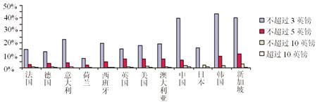 在那些少數(shù)愿意購買手機(jī)電視和電影大片的被調(diào)查者中,大部分人愿意每月支付不超過3英鎊的費(fèi)用。其中,中國、韓國、新加坡的支付意愿較高,歐洲的意大利其次,其23%的被調(diào)查者也表示愿意每月支付不超過3英鎊的費(fèi)用。愿意每月支付3英鎊以上的用戶非常少,在韓國、日本、新加坡這樣的國家,也只有不到11%的人表示愿意每月支付不超過5英鎊的費(fèi)用。(見圖6)