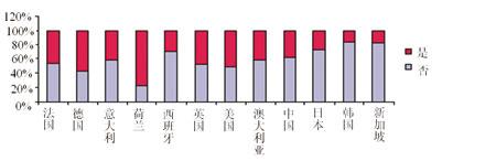 此外,還有一些被調(diào)查者表示愿意接受廣告以換取手機(jī)電視和電影大片。對于兩種不同的業(yè)務(wù),用戶對這一問題的反應(yīng)相似。在各個國家中,荷蘭用戶的接受比率較低;在歐洲,西班牙與意大利的接受程度很高;在亞洲,日本、韓國和新加坡的接受比率也很高。(見圖7)