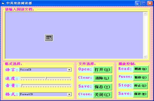 Speech SDK5.1在朗讀中英混合文本時(shí),用中文引擎,對(duì)于英文單詞只能將其包括的各個(gè)字母逐一朗讀出來(lái);用英文引擎,漢字就不能讀,這樣就失去了其本來(lái)的意義。中英雙語(yǔ)閱讀器在這方面進(jìn)行了改進(jìn),實(shí)時(shí)在中英文引擎之間進(jìn)行切換,從而實(shí)現(xiàn)了真正意義上的中英文朗讀,這是本研究最大的創(chuàng)新點(diǎn)。同時(shí)根據(jù)Microsoft